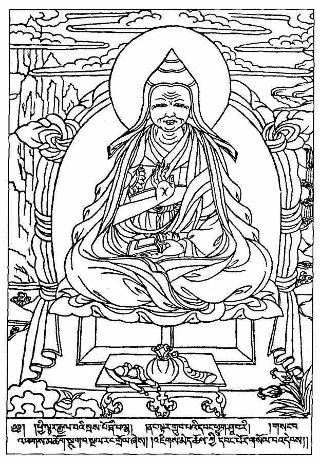 Здесь с должным почтением к океану явивших себя видьядхар трех линий передачи излагается история Дхармы — от изначального будды и до милосердного коренного гуру.