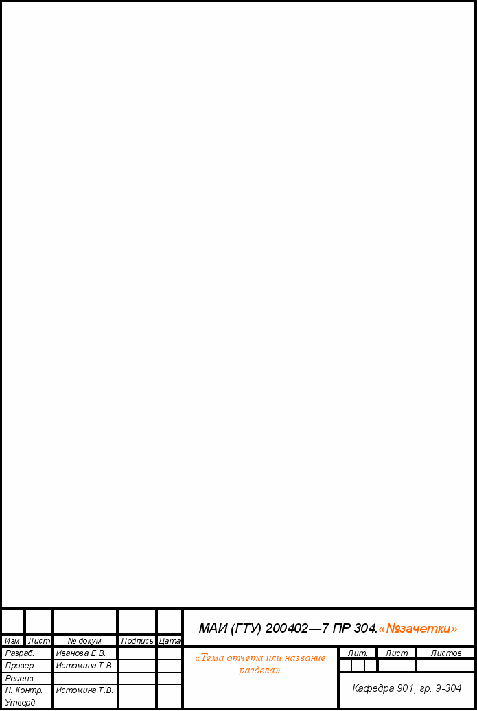 Большой штамп ставится на реферате и на основной части отчета о разработке.