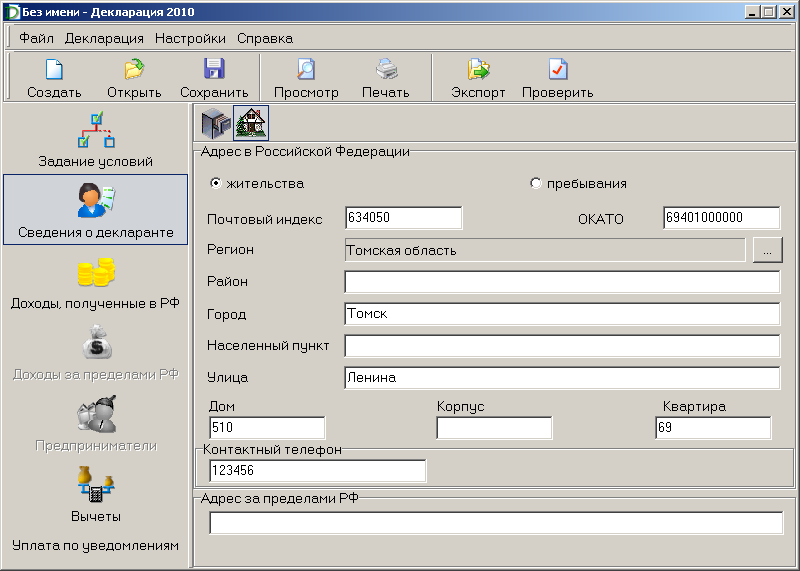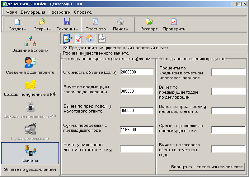 Заполняем налоговую декларацию по налогу на доходы физических лиц (форма 3-НДФЛ) за 2010 в программе "Декларация 2010":