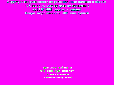 Общая задолженность по региональным налогам составляет 883 млн. рублей. Взыскиваемая налоговыми органами задолженность составляет 75%, из которой 78% или 510 млн. руб. – задолженность физических лиц по транспортному налогу. Общее количество плательщиков транспортного налога составляет 378 тысяч человек. Как правило, в среднем сумма транспортного налога в расчете на одного налогоплательщика в среднем составляет 1000 рублей. Низкая платежеспособность сельского населения, отсутствие у граждан сформированного правосознания по обязанности уплаты налогов, связанных с наличием права собственности на объекты имеющегося у них имущества, существенно влияет на состояние задолженности.