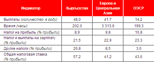 Существующая государственная фискальная политика не способствует накоплению средств предприятиями на инвестиционные цели, на стимулирование производства конкурентоспособной продукции. Налоговый кодекс с его высоким уровнем налоговых платежей значительно увеличивает себестоимость отечественной продукции, влияет на рост цен, на общий уровень инфляции, ограничивает развитие экспорта. К сожалению, фискальная политика Кыргызстана стала главной причиной расцвета в экономике коррупции и ухода субъектов малого и среднего бизнеса в «теневую экономику». Об этом свидетельствует исследование Всемирного банка, проведенное в рамках проекта «Ведение бизнеса» (см. график 3 и таблицу № 4, которая предоставляет информацию о налогах).