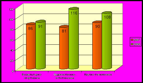- научно-техническое направление представлено творческими объединениями: «Компьютерный мир», «Юный информатик», «Интернет-клуб»;
