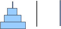 При N=2 решение также очевидно. Необходимо перенести верхнее кольцо на второй стержень, затем освободившееся нижнее на 3-й, а потом маленькое кольцо также перенести на 3-й стержень.