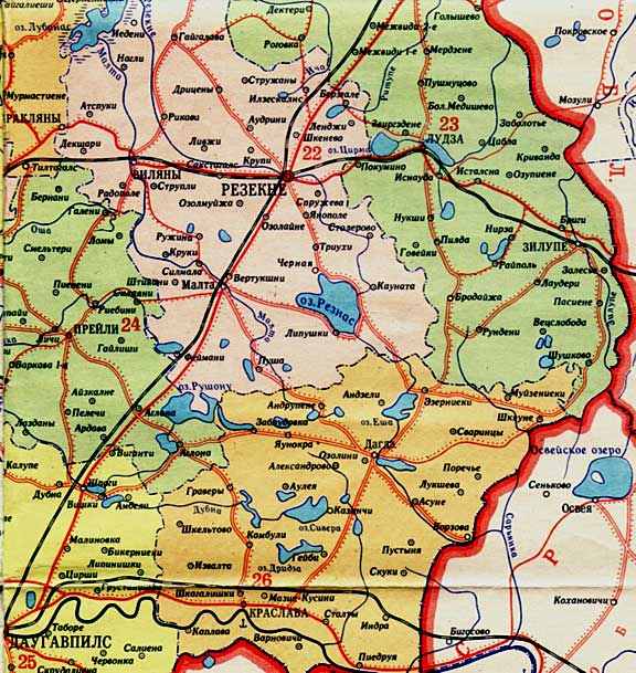 Рисунок 6. Часть карты Латвийской ССР. Юго-восток республики.