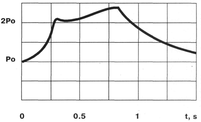 Перечисленные составные части ГОС экологически безвредны, широко выпускаются отечественной промышленностью, взрыво- и пожаробезопасны в условиях работы на объекте. ГОС представляют собой маловязкие растворы плотностью 1250-1300 кг/м3, которые готовят непосредственно на месте проведения работ, закачивают в скважины через насосно-компрессорные трубы (НКТ) и поджигают специальным воспламенителем. Воспламенение ГОС происходит только при повышенных давлениях (не менее 10 МПа) в скважине от внешнего источника энергии. Генерируемый импульс давления показан на рисунке 5. В качестве воспламенителя применяется генератор давления в специальной компоновке, спускаемый в зону расположения ГОС на геофизическом кабеле. Объемы закачиваемых в скважины ГОС определяются горно-геологическими параметрами пласта, техническим строением скважины и обычно составляют 700-1000 л [6].