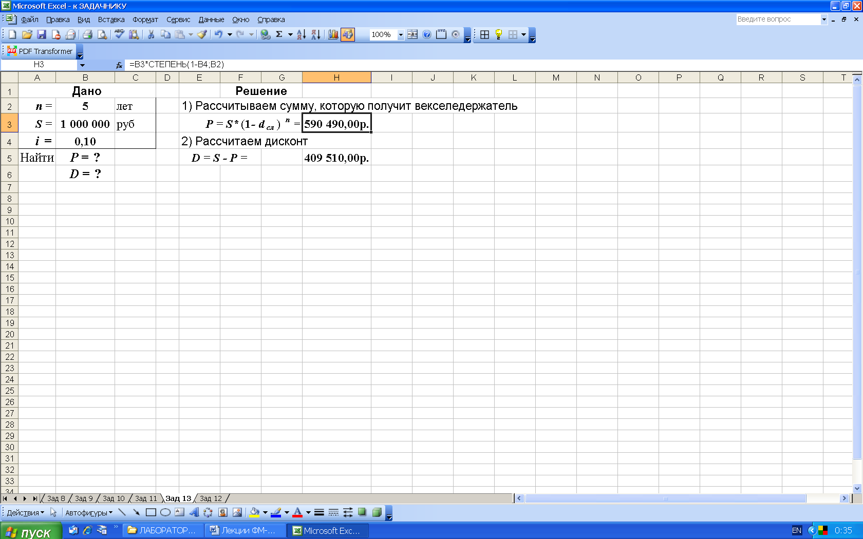 1-й вариант. Вычисления по формулам с помощью подручных вычислительных средств по формуле (13).