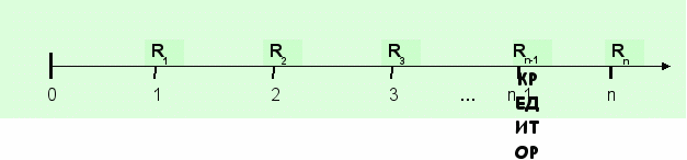 - срок ренты (n) – время, измеренное от начала финансовой ренты до конца ее последнего периода,