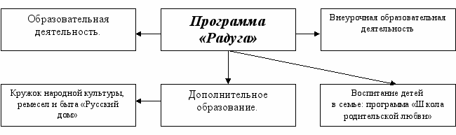 Программа «Радуга» имеет ярко выраженную национально-региональную направленность. Девизом программы стали слова М.А.Шолохова: «Моя Родина, моя родная земля, моё Отечество, в жизни нет горячее, глубже и священнее чувства, чем любовь к тебе…».