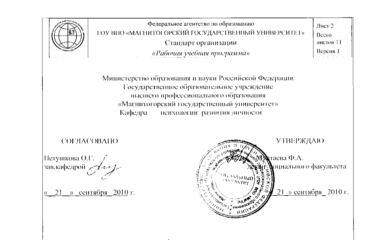 ![]() | Федеральное агентство по образованию ГОУ ВПО «МАГНИТОГОРСКИЙ ГОСУДАРСТВЕННЫЙ УНИВЕРСИТЕТ» Стандарт организации «Рабочая учебная программа» | Лист Всего листов Версия 1 |