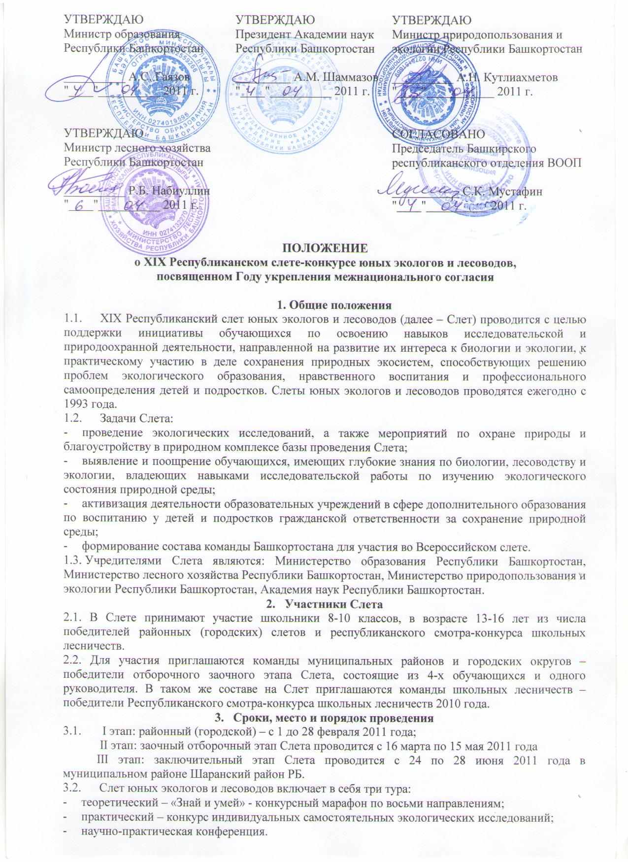 - Министерство образования Республики Башкортостан и оргкомитет утверждают состав жюри, условия конкурсов.