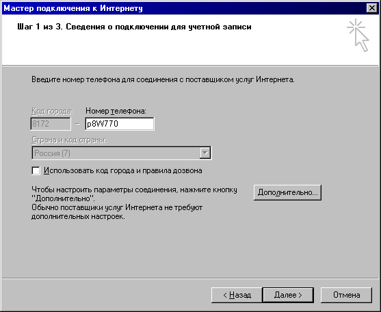 СЗТ (Северо-Западный Телеком) ![]() | 6. Введите номер телефона модемного пула: -при тональном наборе: 8770; - при импульсном наборе: p8W770(латинская p вводится при включённой английской раскладке клавиатуры). ![]() |