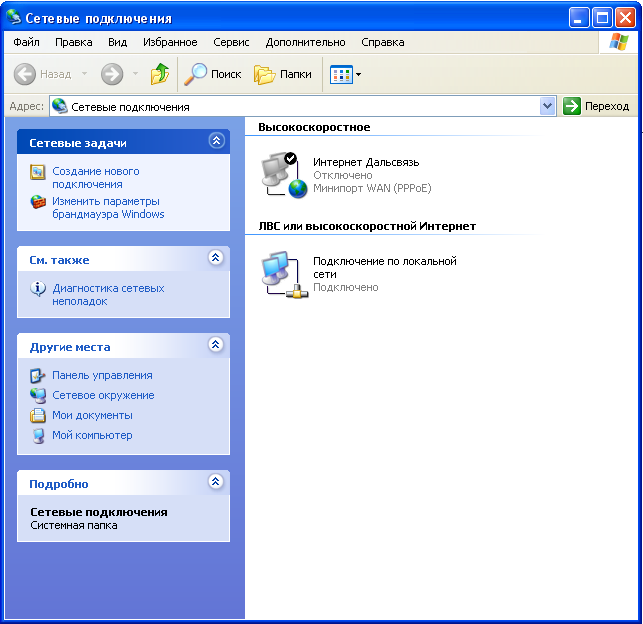 В окне «Сетевые подключения» должен появиться ярлык «Локальная сеть»