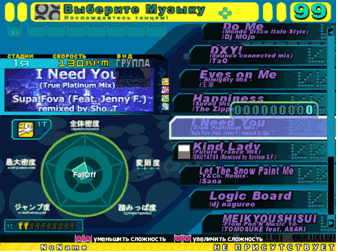 - количество и быстрота движения стрелок на экране во время исполнения танца могут привести Вас к полной растерянности. Не переусердствуйте при выборе сложности. Эту опцию Вы можете регулировать с помощью стрелок ВВЕРХ-ВНИЗ на Вашем коврике. Отрегулировали? Жмите СТАРТ и начинайте Ваш танец. ВНИМАНИЕ! Если после запуска песни Вы сразу же нажмёте СТАРТ ещё раз, откроется меню дополнительных опций песни. Это очень сложное меню, и разбираться в нем рекомендуется только опытным пользователям. Если же вы случайно попали в это меню, нажмите несколько раз клавишу СТАРТ на Вашем коврике и начинайте танец.