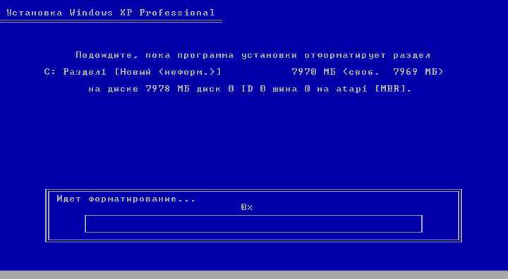 Когда раздел отформатировался, программа установки автоматически стартует установку и копирует установочные файлы на жесткий диск.