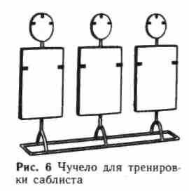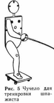 Для тренировки шпажных и сабельных приемов применяется чучело с рукой (см. рис. 5).