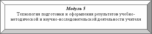 Например, рассмотрим более подробно пятый модуль представленной учебной программы «Технология подготовки и оформления результатов учебно-методической и научно-исследовательской деятельности учителя».