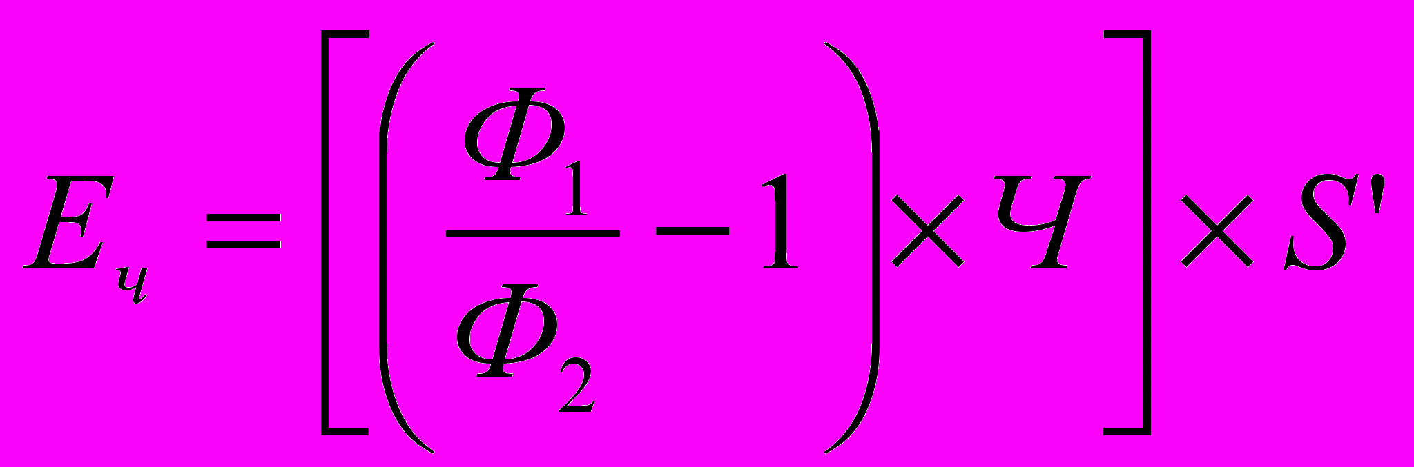 (9.12)де Еч— економія витрат за рахунок умовного вивільнення працівників; Ф1, Ф2 — фонд робочого часу в середньому на одного працюючого відповідно до і після раціоналізації, годин;