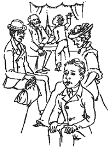 ...Моя первая любовная сцена была нелюбовная: он не любил (это я поняла), потому и не сел, любила она, потому и встала...