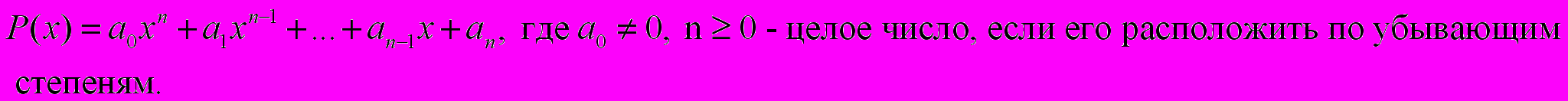 Целое рациональное выражение по-другому называется многочленом (полиномом). Многочленом называется рациональное выражение, в котором над переменной величиной производятся только действия сложения, вычитания и умножения.