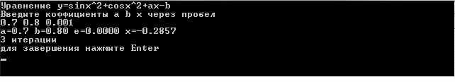 Рис. 4 Окно программы после запускаДля ввода данных соответственно предложению к вводу вводим: коэффициент а, коэффициент b, погрешность. После введения нужно нажать клавишу [Enter].