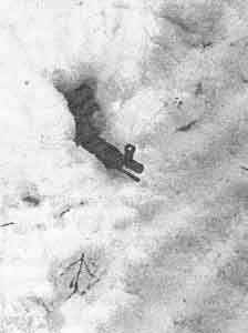 Довольно быстро образовалось весьма уютное логово, в котором можно было си деть. После того как входной лаз завесили старым немецким мешком из хозяйства этого знающего инструктора, внутри позиции вдруг стало необычайно тепло по сравнению с -20°С, которые были снаружи. К тому же там не было ветра. После того как старик зажег огарок свечи и поставил его в углу таким об разом, чтобы огонь не был виден из амбразуры снаружи, можно было снять рукавицы, шапку и расстегнуться. Инструктор объяснил все это тем, что воздушная подушка, образованная толстым хвойным перекрытием, очень хорошо держит тепло. К тому же, как он сказал, "огонек свечи делает человеку теплее на душе", а от этого становится теплее всему организму. По его словам, имея пару свечей, на такой позиции можно было продержаться сутки при самых жутких морозах. В довершение ко всему дед капитально полил укрытие водой снаружи, превратив его в ледяной дот. По тому, как быстро и сноровисто он все это делал в сгущающихся сумерках, автор понял, что свои 10 лет лагерей этот неразговорчивый человек получил недаром. Довольно часто снайперам приходится подползать к противнику и работать по заранее разведанной цели с подскока, без подготовленной прежде позиции, и сразу исчезать по принципу "укусил и скрылся". Для этого приходится кратковременно "возникнуть". Чтобы возникнуть незаметно, надо не выделяться на фоне местности, а для этого снайперу необходимо все время крутить головой и контролировать фон, который находится за ним. На фото 161 снайпер этого не сделал и в белом маскхалате возник на черном фоне, к тому же на ровном гребне высокого места. Он стал заметен, и за те 3-4 секунды, необходимые ему для выстрела, его могут "снять" самого.