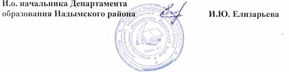 4. Контроль за исполнением настоящего приказа возложить начальника Управления общего и дополнительного образования Департамента образования Надымского района О.Е.Рудакову.
