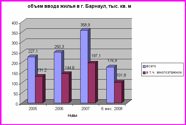 Среди городов Алтайского края по вводу на душу населения в 2007 году г.Барнаул занимает 2-е место после г. Белокуриха. Необходимо заметить, что в г.Белокуриха в 2007 г. ввод многоэтажного жилья отсутствует.