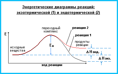 На основе разницы между запасом энергии в исходных веществах и продуктах реакции выделяют два типа реакций.