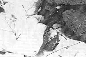 Фото 193. Позиция снайпера под плитой, накрывающей канализационный люк Стрелки показывают протоптанную в снегу дорожку