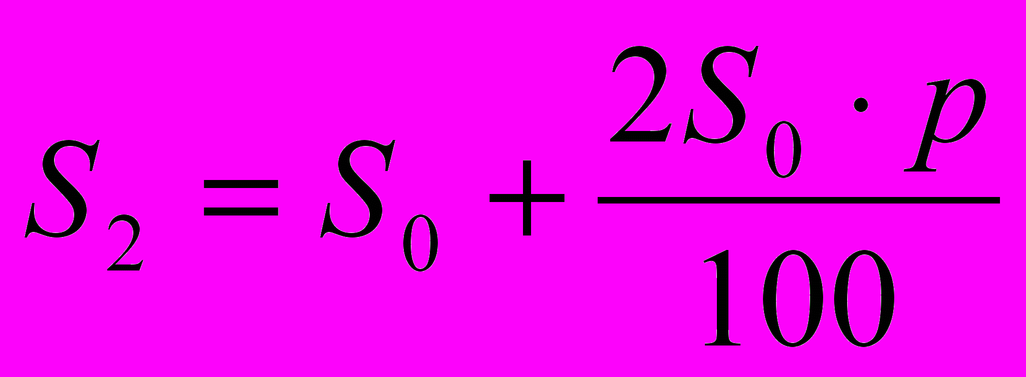 – сумма вклада через год;По прошествии второго года банк начислит p% уже на сумму S1 и поэтому она увеличится на