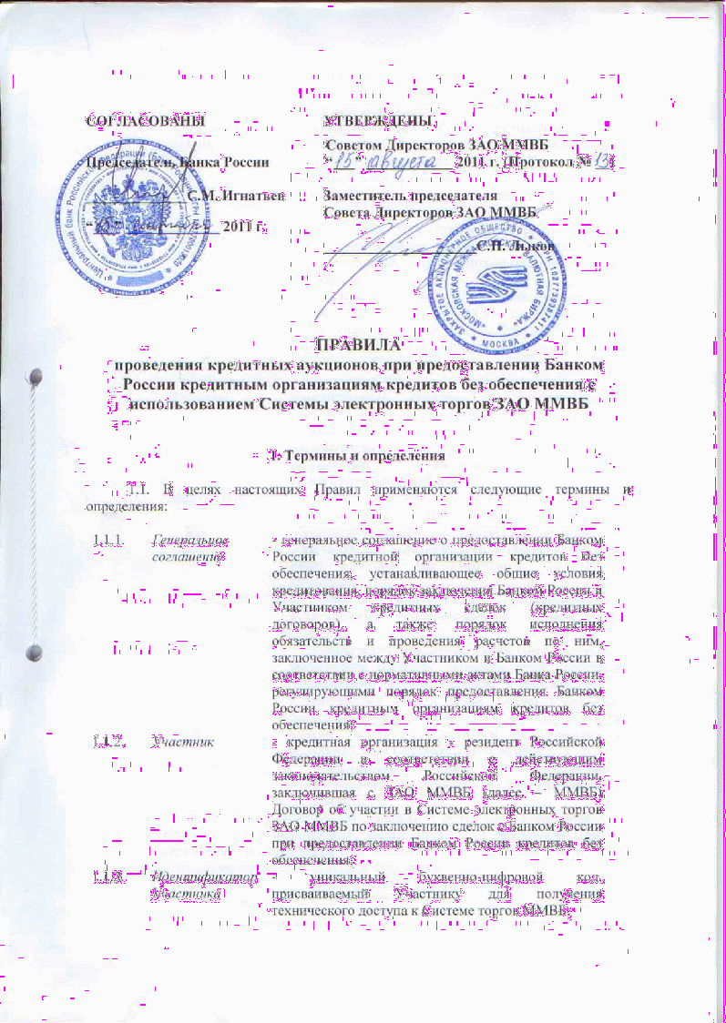 2.2. Заключение кредитных сделок осуществляется по результатам кредитного аукциона, проводимого с использованием Системы торгов ММВБ в соответствии с настоящими Правилами.