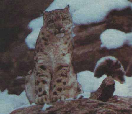 В высокогорьях Средней и Центральной Азии живет ирбис, или снежный барс. Этот очень своеобразный крупный зверь отлично приспособлен к суровым условиям. Иногда его включают в род больших кошек. По величине ирбис примерно с леопарда, длиной 103—130 см, хвост 92—105 см, масса 23—41 кг. Тело ирбиса вытянутое, приземистое, на сравнительно коротких ногах. Хвост длинный и благодаря равномерному густому опушению очень толстый. Мех чрезвычайно густой, пушистый, мягкий. Такой волосяной покров служит отличной защитой от холода.