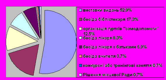 | 2. | бесіда бібліотекаря про шкідливість тютюну | 25 | 17,3 |
