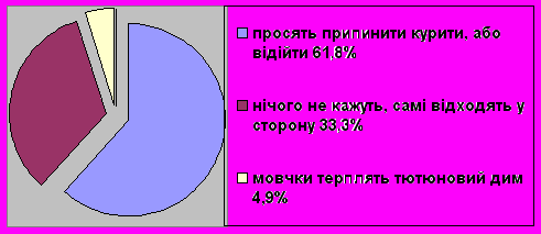 | 1. | просять припинити курити, або відійти | 89 | 61,8 |