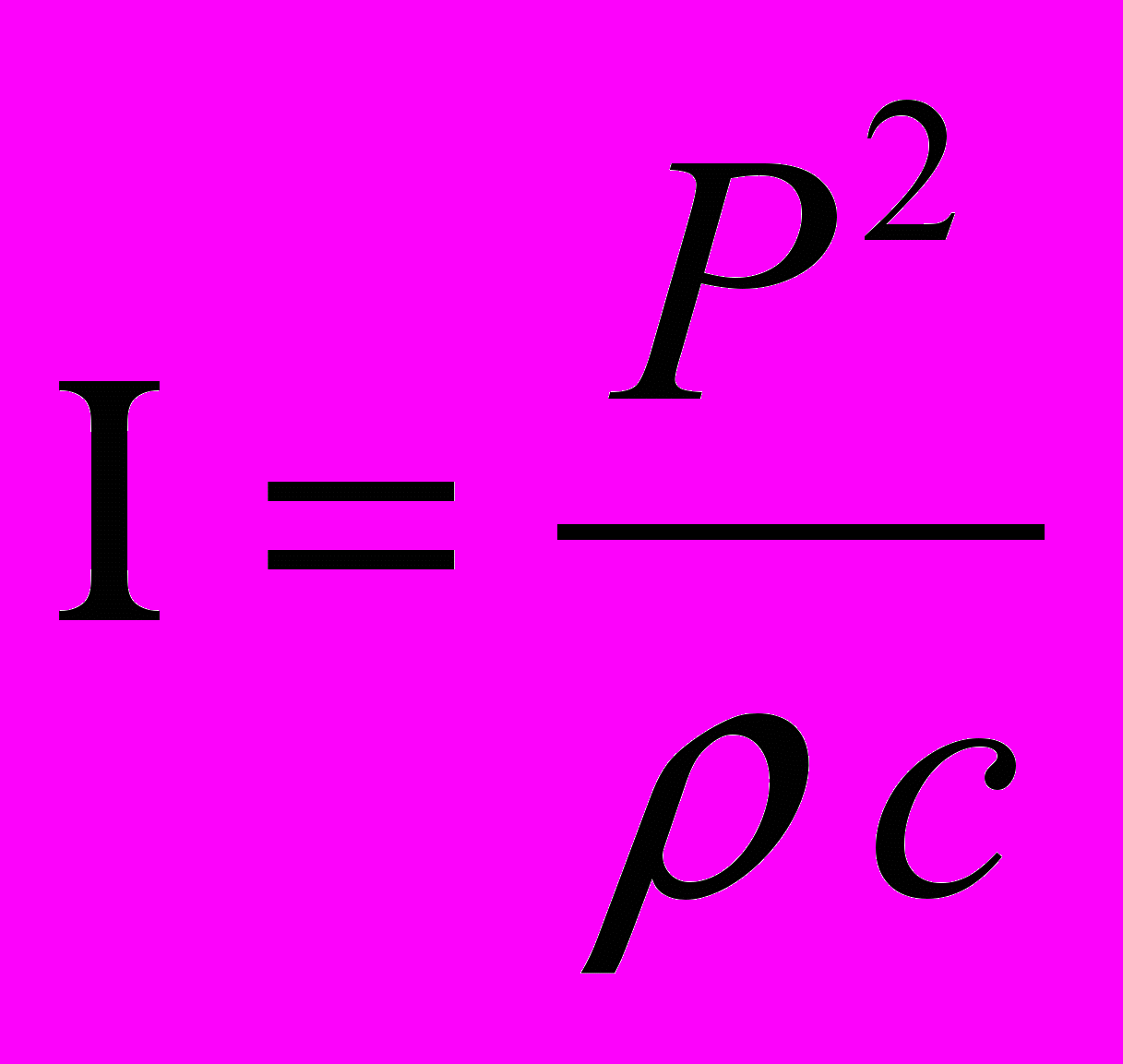 Інтенсивність звуку I – енергія, переношувана звуковою хвилею в одиницю часу через одиничну поверхню, перпендикулярну напрямку поширення звукової хвилі.