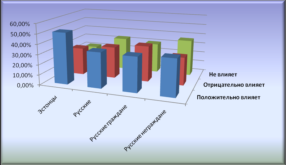 "Конечно, влияет. Например, реакция русской общественности на события "Бронзовой ночи" в Эстонии очень сильно отразилась на бизнесе местных русскоговорящих предпринимателей, имеющих торговые отношения с Россией. Также многие жители Эстонии, которые черпают информацию из российских телевизионных каналов, пропитанную российской пропагандой, и становятся более негативно настроенными по отношению к Эстонии";