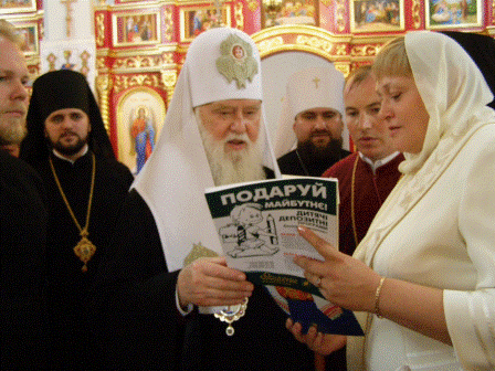 Т.В. Блудова презентує Святійшому Патріарху Філарету
