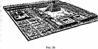 То, что храмам в Месопотамии намеренно придавали прямоугольную форму и ориентировали по сторонам света, становится ясно из планировки Вавилона – достаточно сравнить хаотическое расположение улиц и зданий в вавилонских городах с геометрически совершенной планировкой священных мест и квадратной формой зиккуратов (рис. 36).