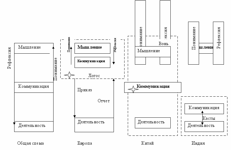 Треугольник 1: действительность (слой деятельности) – подлинность (слой коммуникации) – реальность (слой мышления)