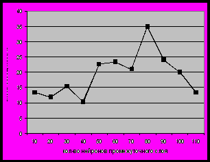 . И теоретические вычисления и кривая обучения определяют оптимальный размер от 40 до 50 нейронов в промежуточном слое.По требованию теоремы Хехт-Нильсена в нейронных сетях как для первого (скрытого), так и для второго (выходного) слоя использованы сигмоидальные передаточные функции с настраиваемыми параметрами.