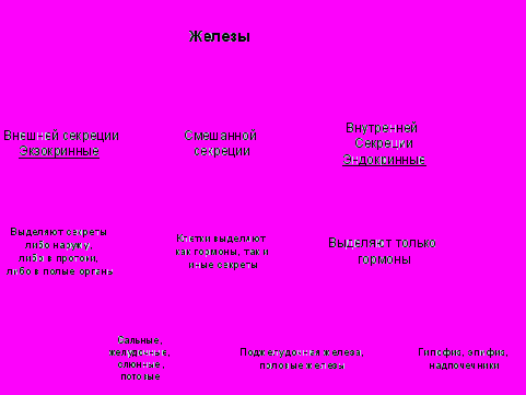 - Железы внутренней системы;