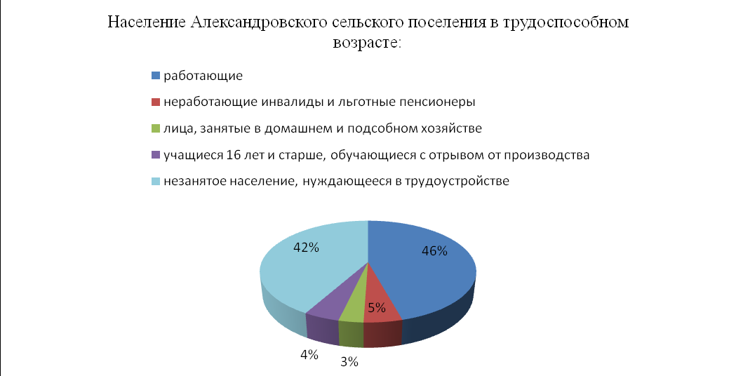 Таким образом, в Александровском сельском поселении за предшествующий период сформировались крайне негативные тенденции в развитии демографических процессов, результатом которых явились значительные потери населения, то есть наблюдалось интенсивное снижение демографического потенциала территории муниципального образования.