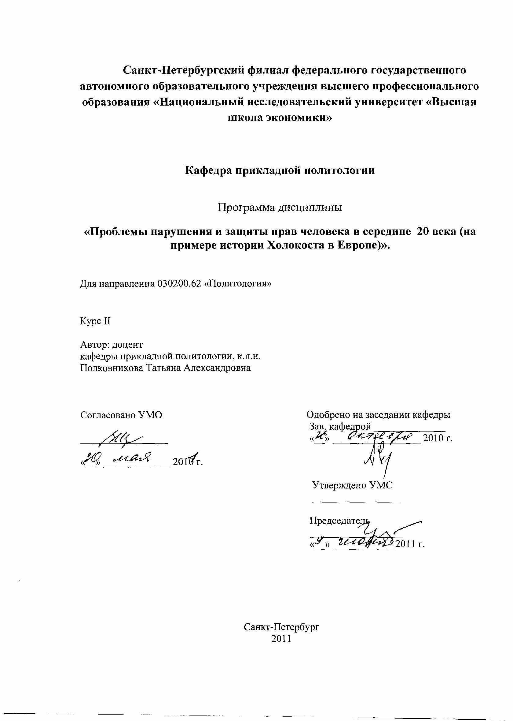 - Программа дисциплины «Проблемы нарушения и защиты прав человека в середине второй половине, 135.29kb.