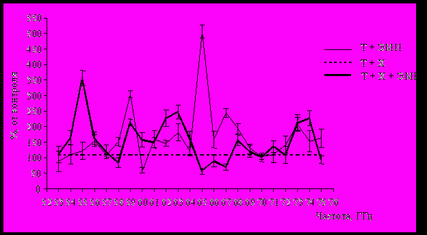 от частоты воздействия ЭМИ КВЧ, комбинированного воздействия ЭМИ КВЧ