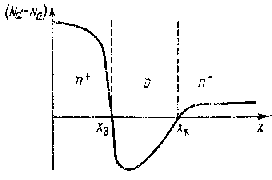 Рис. 1.3. Распределение примесей в транзисторной структуре, полученной методом односторонней диффузии