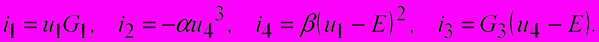 Рассмотрим в качестве примера схему, изображенную на рис. 1.4. Пусть ВАХ нелинейных элементов описываются выражениями