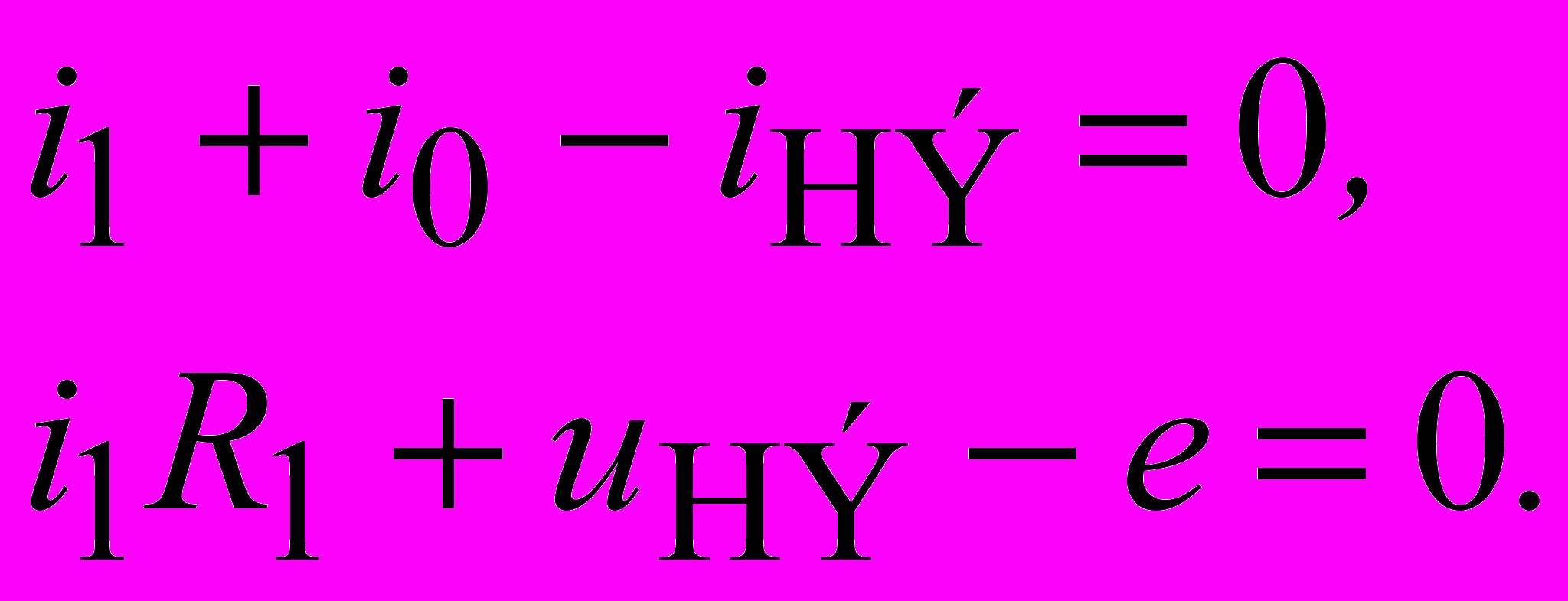Ток в НЭ и напряжение на нем находится из системы, состоящей всего из двух уравнений. Так, применяя второй закон Кирхгофа к схеме рис. 1.5, б получаем:
