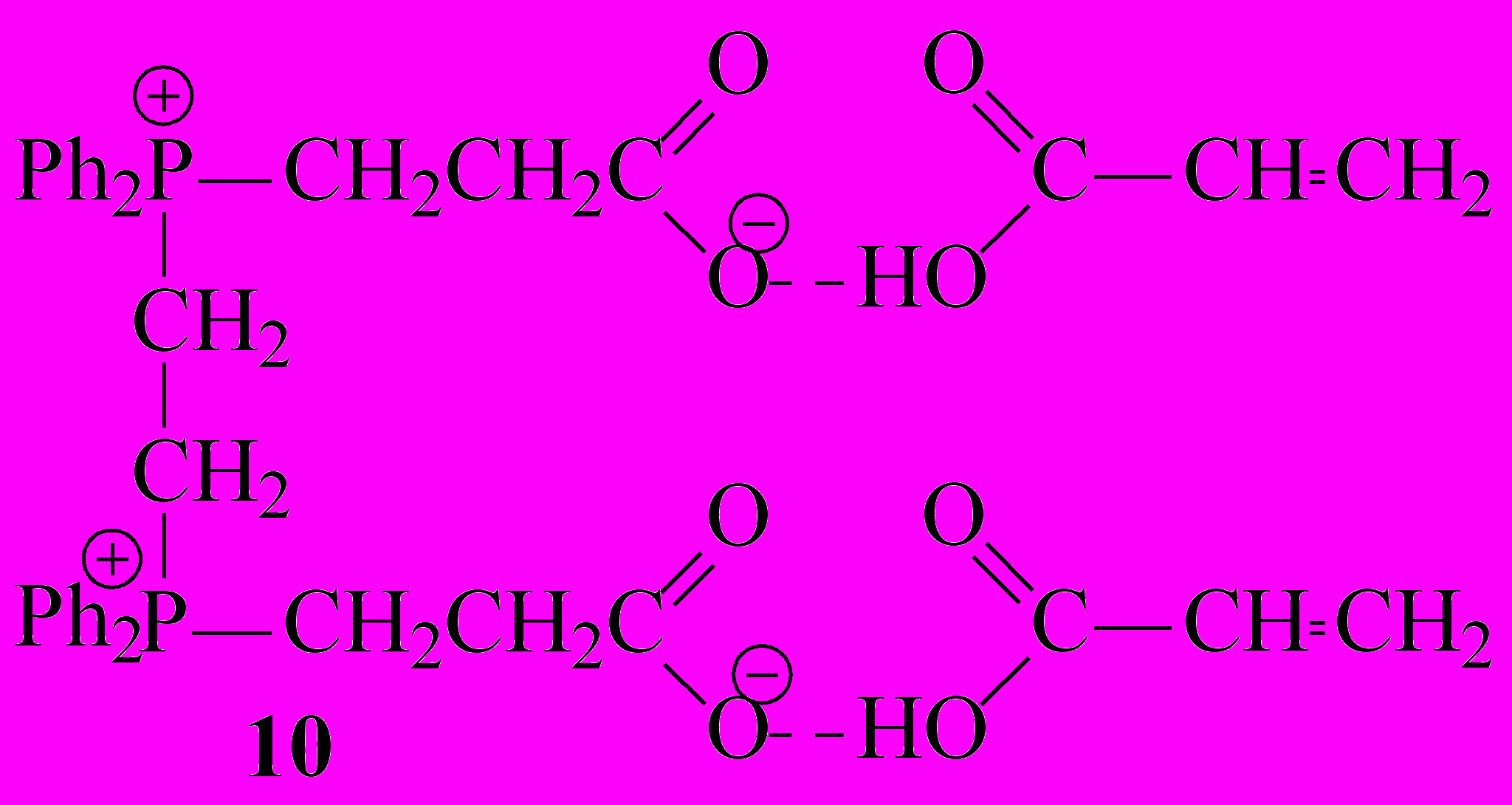 Реакция бис(дифенилфосфино)этана с двукратным избытком акриловой кислоты протекает быстро с образованием смеси продуктов присоединения бис-фосфина к акриловой кислоте состава 1:1 (8) и 1:2 (9).