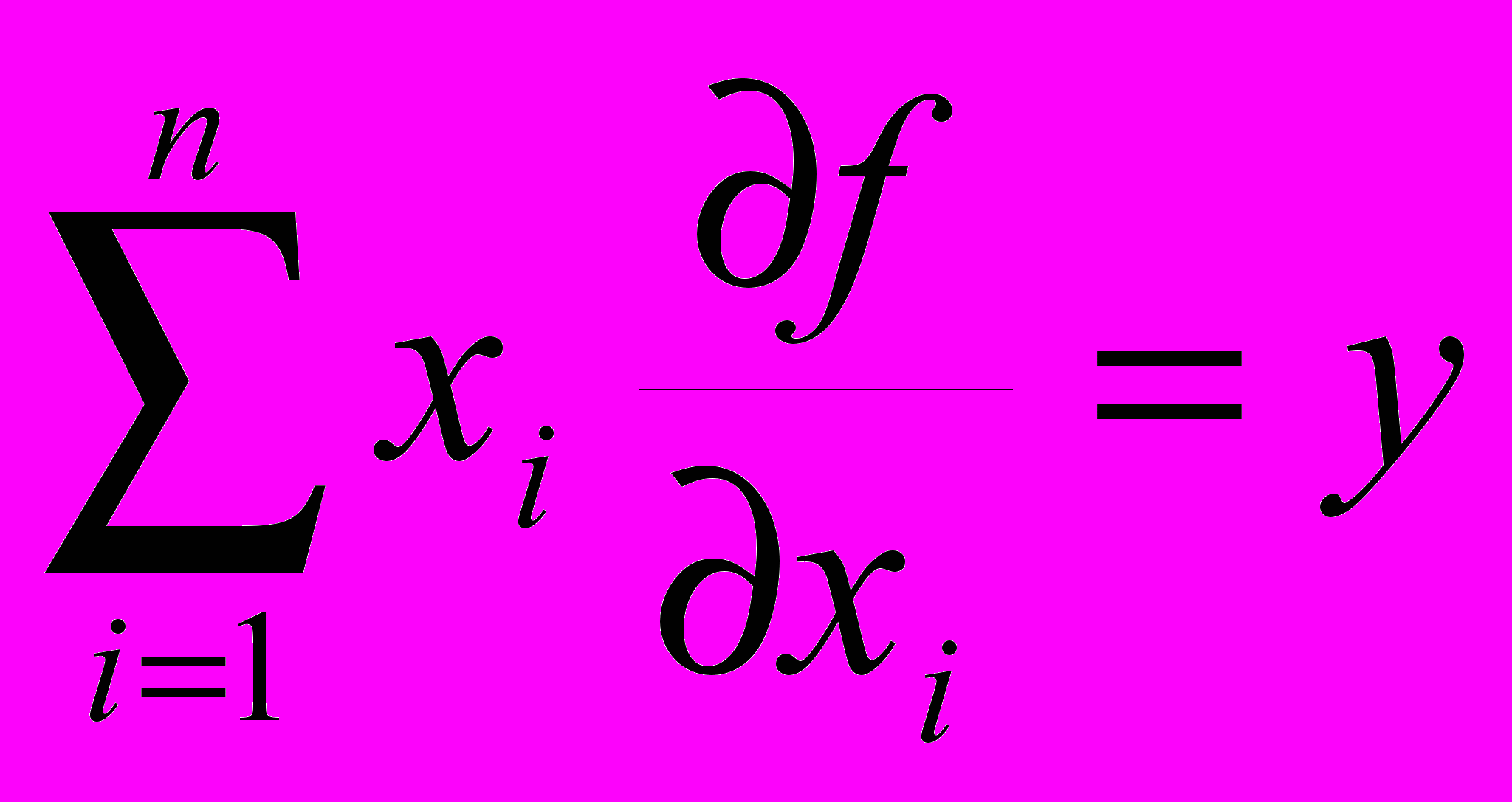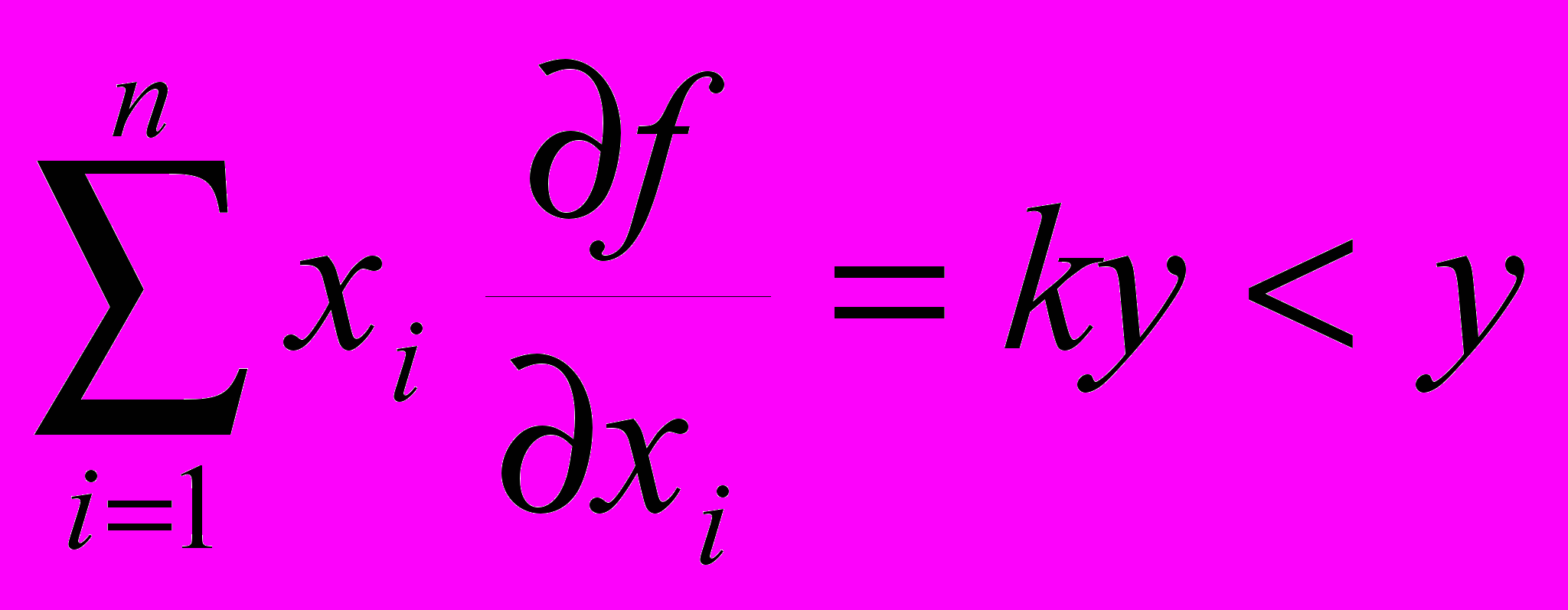 Для ф-ии: y=f(x1, x2, ..., xn) она будет являться однородной степени к тогда и только тогда, когда выполняются следу выражение: