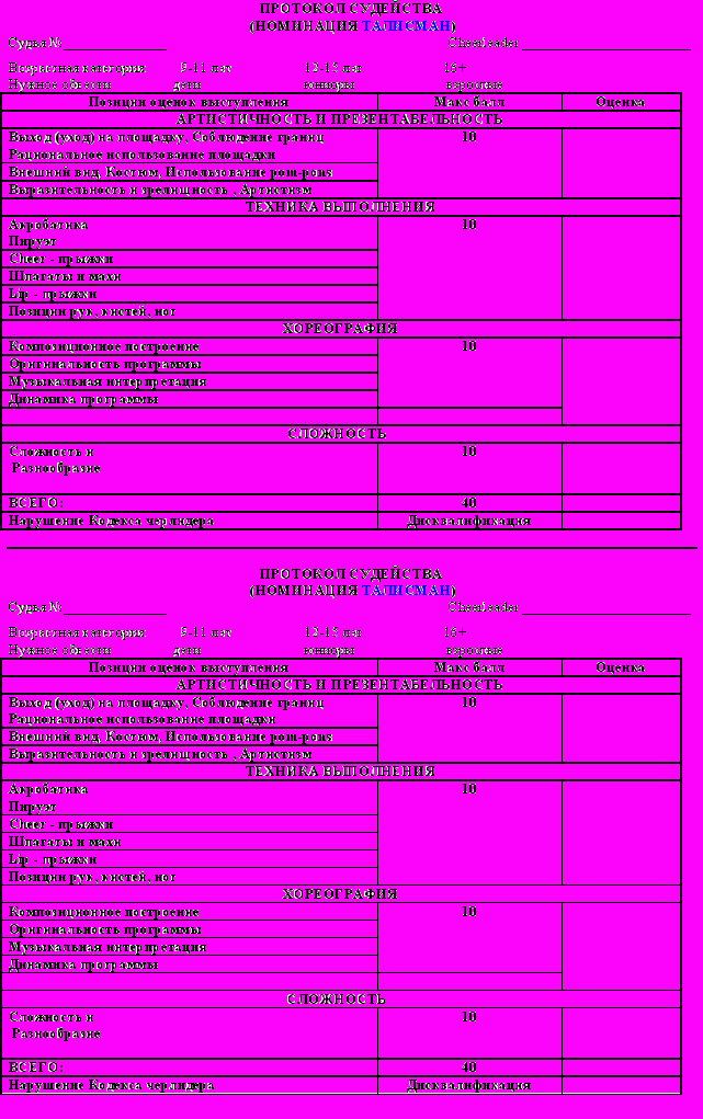 Счетчики нарушений – проверяют соответствие действий команд правилам соревнований по черлидингу;